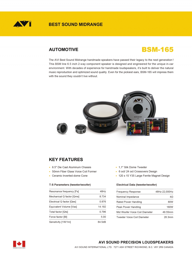 AVI Premium 2-way Component Speaker BSM-165