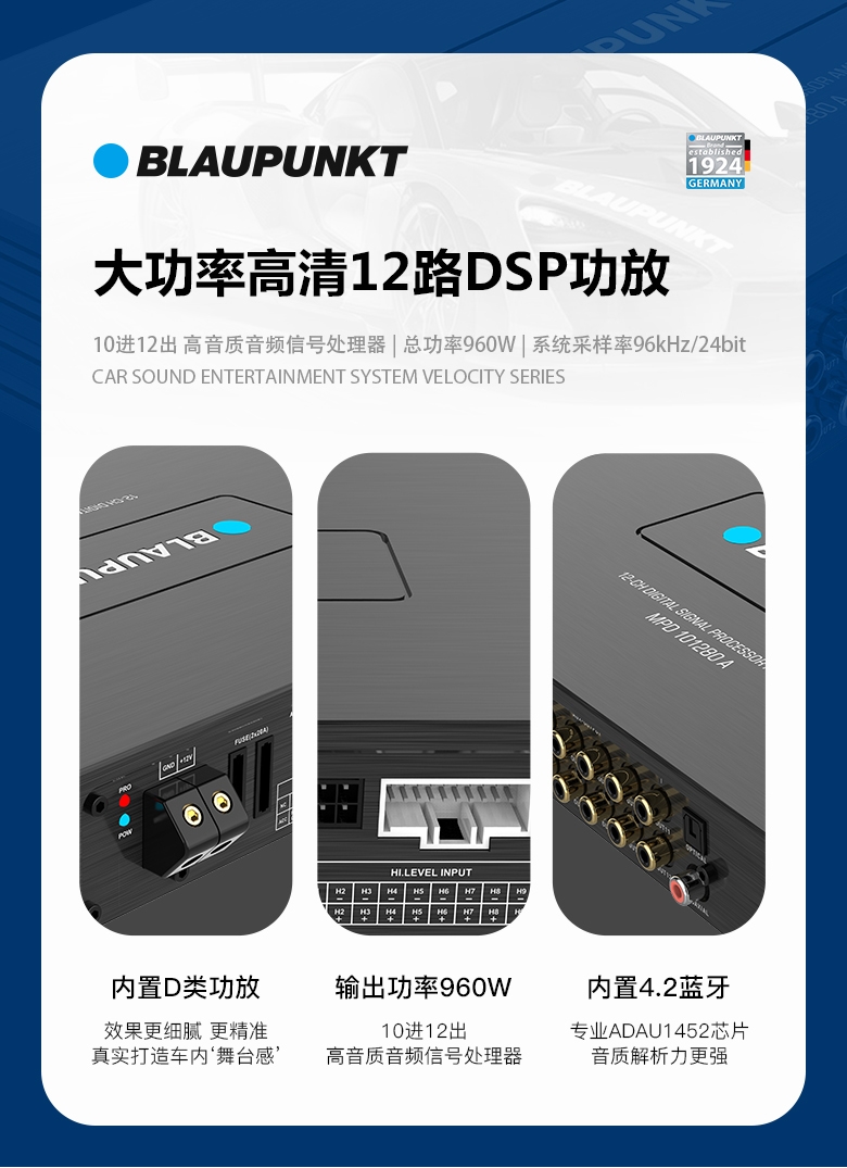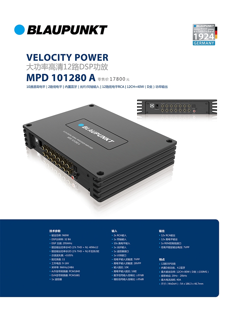 德國(藍(lán)寶BLAUPUNKT)大功率高清12路DSP功放 MPD 101280 A