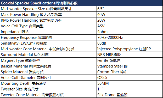 MBQ CX-ML-1651 6.5寸同軸喇叭